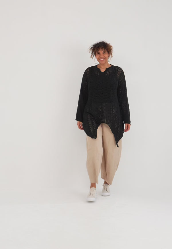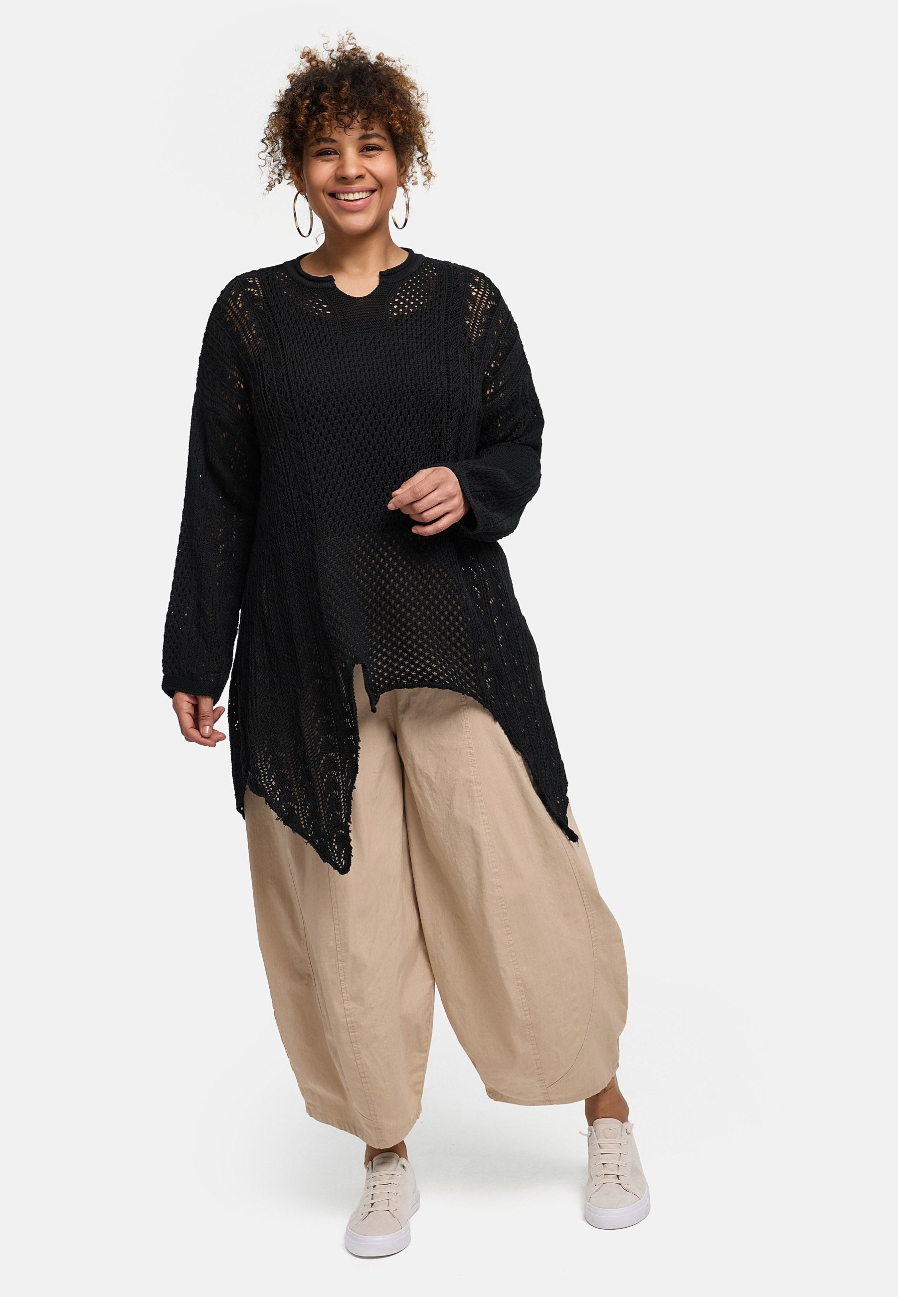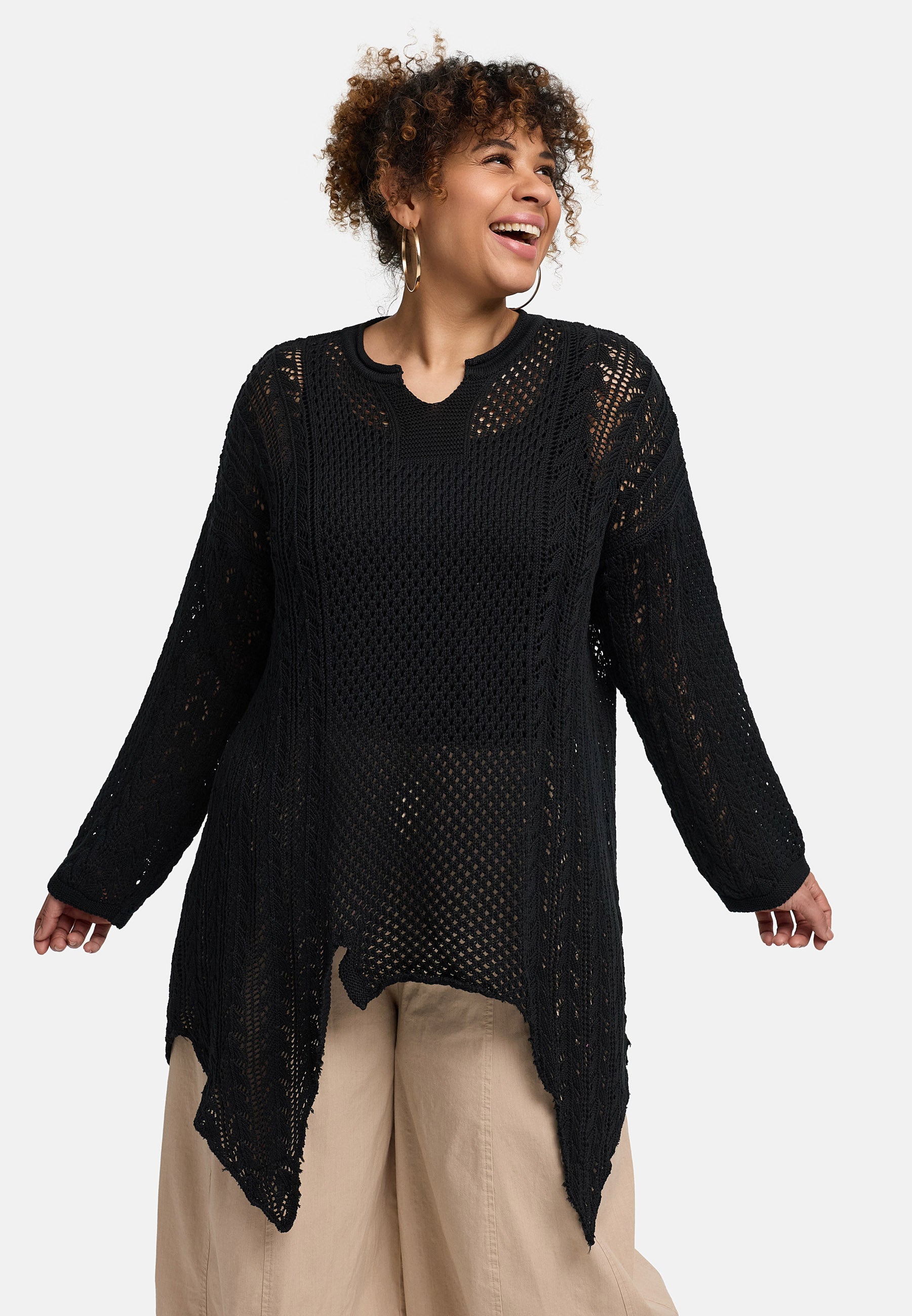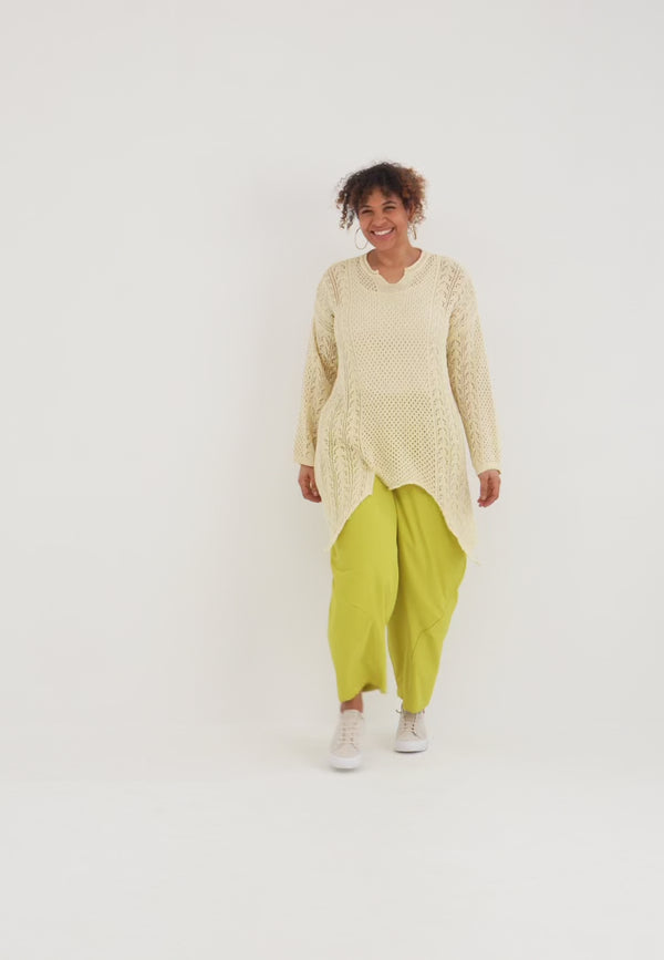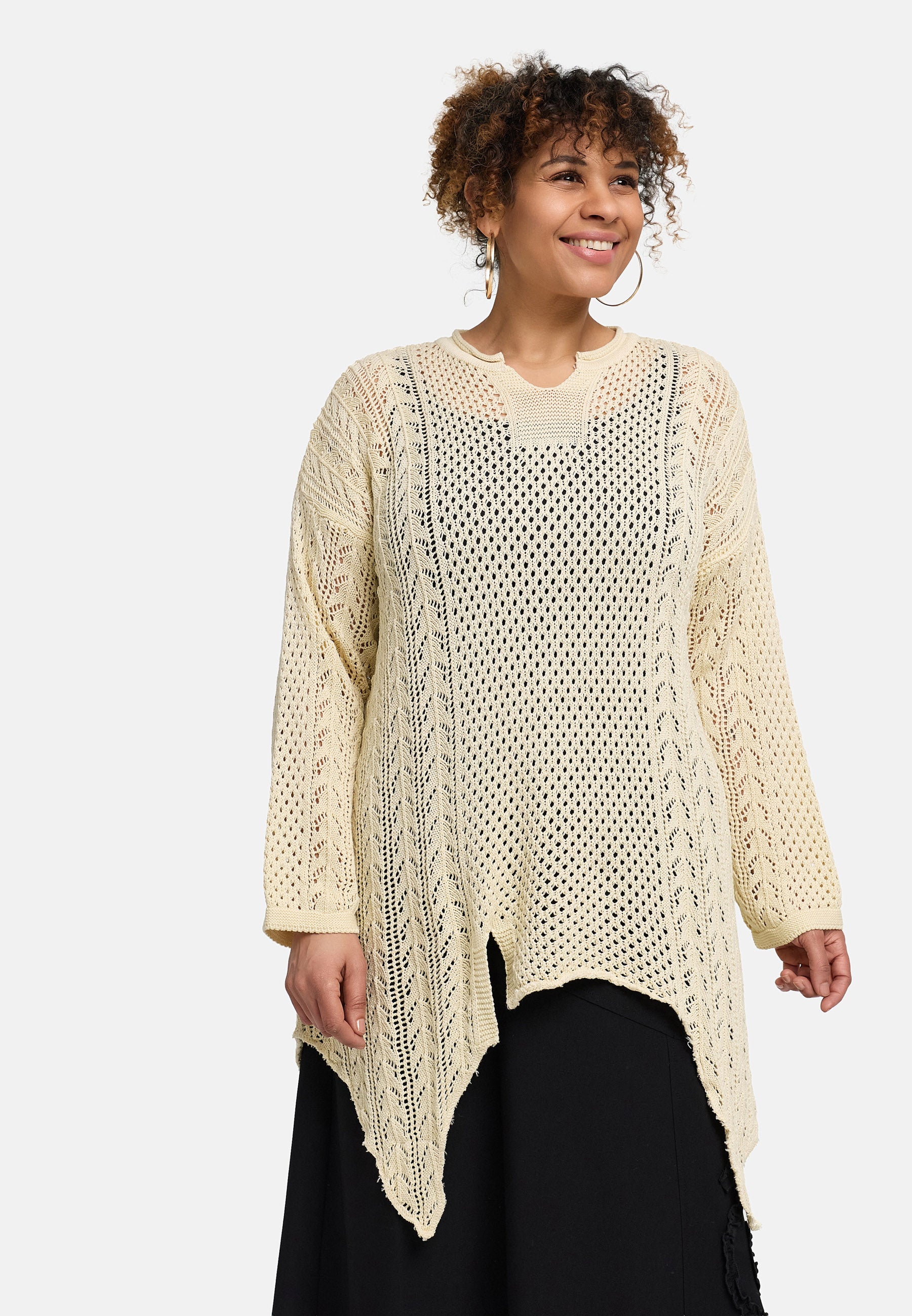 'Cotture' Strickshirt Long – A-Linie in luftiger Ajour-Struktur